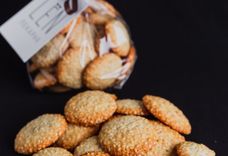 200 г • Семена кунжута, мука пшеничная высшего сорта, сахар, масло сливочное 84%, яйцо, соль морская